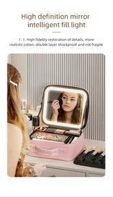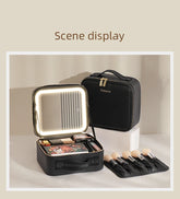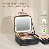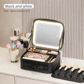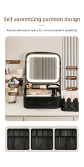 Makeup Travel Train Case with LED Lighted Mirror, 3 Color Adjust Settings, Travel Makeup Bag With Adjustable Dividers,