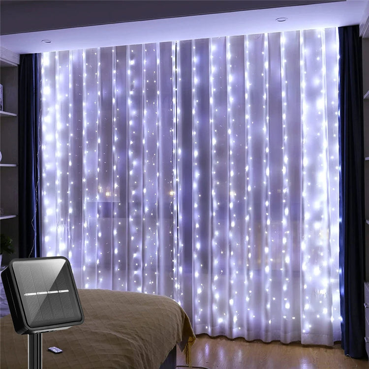 Solar Curtain Light LED Outdoor Waterproof 300leds Garland Decoration String Lights Yard Fairy Garland String Lights