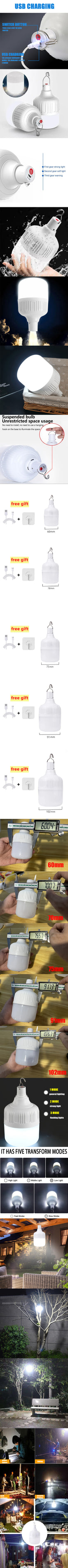 1-8pcs Portable Outdoor Camping Lights USB Rechargeable lamp LED Emergency Bulb Hook High Power Tents Lantern Night Lights Bulb