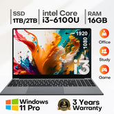 15.6" Intel Core i3 6100U Laptop Computer Windows 11 Pro 16GB RAM 512GB 1TB SSD Portable Notebook PC Office Study Laptops
