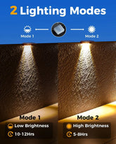 1. 150 Lumen High Brightness: Solar fence lights offer two brightness modes, ensuring excellent illumination for your fence. In high-brightness mode for 5-8 hours. The low brightness mode for 10-12 hours.