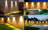 2. Upgrade Focus Lens LED:The upgraded fence solar lights are equipped with 4 focusing lens LEDs, making the outdoor fence lights more concentrated and dazzling.