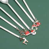 6PCS Christmas Spoons Coffee Cutlery Set Stainless Steel Cutlery Set Dessert Spoon Forks Christmas Gifts Elk Christmas Decoratio
