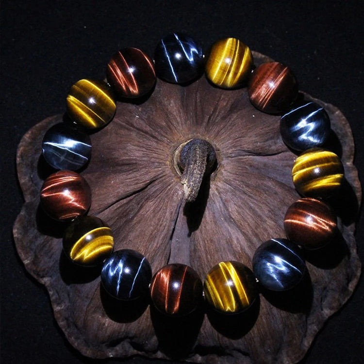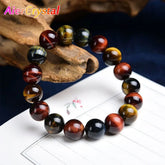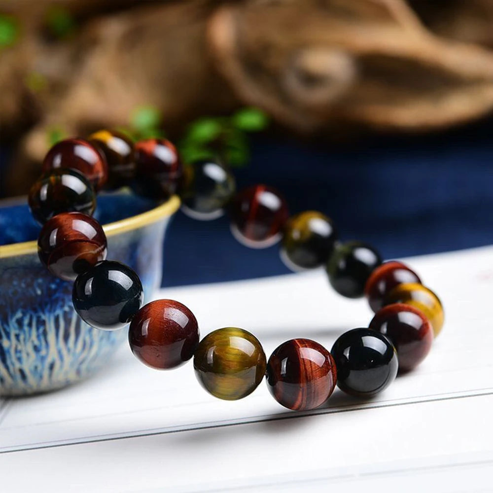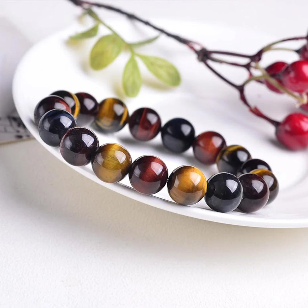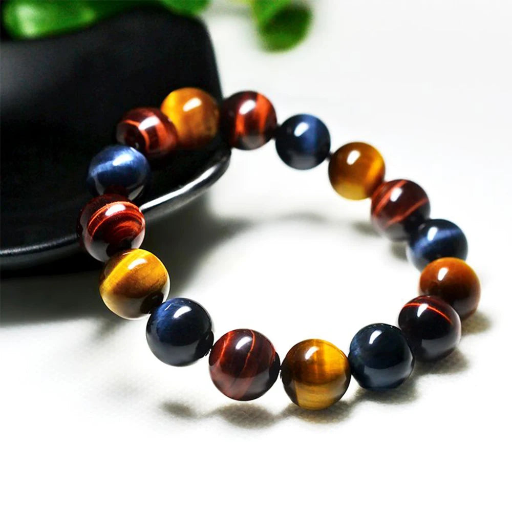 Colored Tiger Eye Bracelet Men and Women Charm Natural Stone Jewelry Healing Buddha Elastic Rope Couple Crystal Bead Bracelet
