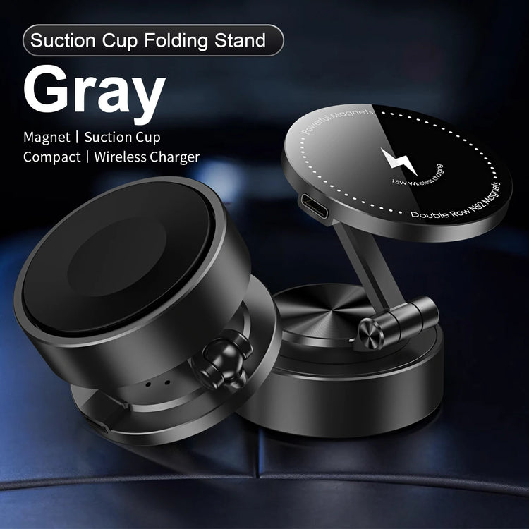 Double Sides Car Phone Holder Magnetic Vacuum Adsorption Bracket with Wireless Charger 360 degree Rotating Car Phone Stand