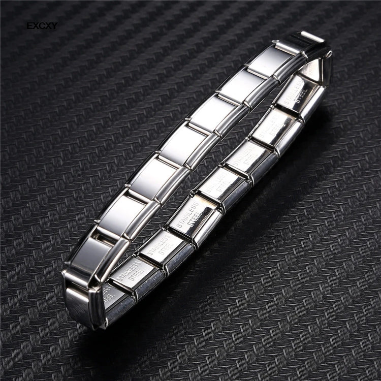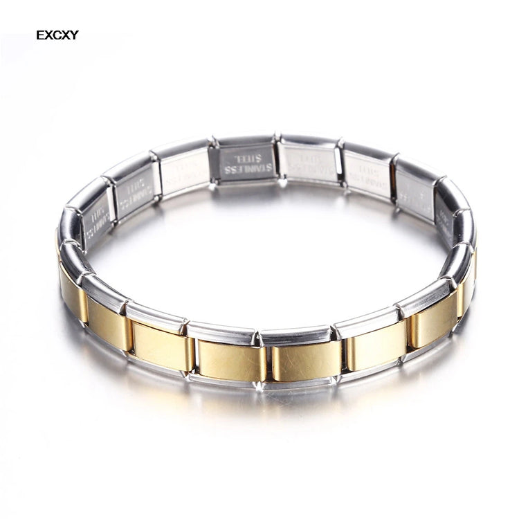 EXCXY New Women's Jewelry 9mm Width Itanlian Elastic Charm Bracelet Fashion Stainless Steel Bangle