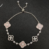 Fashion New Shell Stone Crystal Pink Flower Bracelet for Women Personalized Stainless Steel Cuff Bracelet Jewelry Accessories