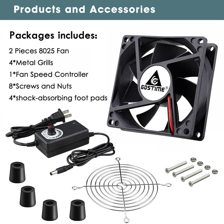 GDSTIME 80mm Server Fan DC 12V 220V Btc Mining Machine Chassis Workstation Cabinet Radiator 8025 Dual Ball PC Computer Case Fan