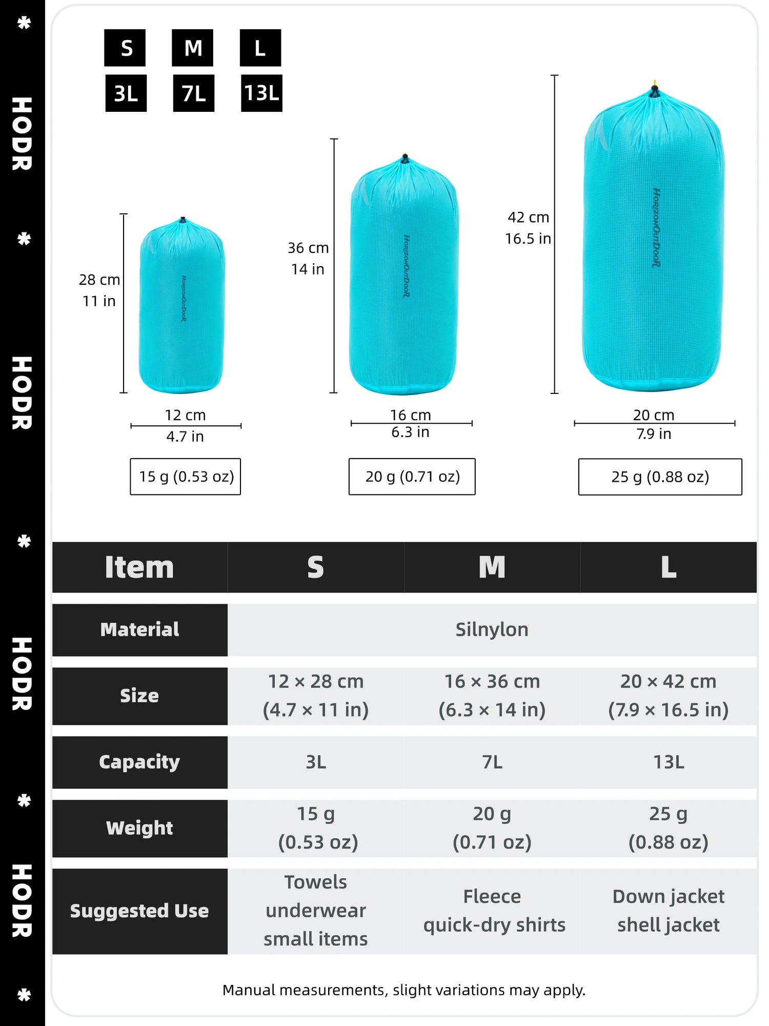 [HODR] Ultralight Stuff Sack Ultra-SIL Ripstop Water-Resistant Ultralight Ditty Bags Drawstring for Traveling Hiking Backpacking