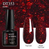 MEET ACROSS 7ml Red Gel Nail Polish Crystal Semi Permanent Soak Off UV Gel Varnish Nail Art Manicure Base Matte Top Coat Vernis