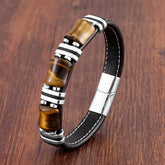 Natural Stone,Tiger Eye Bracelet,Black Leather Rope Chain,Men Bracelet,Stainless Steel Bracelet,Women Fashion Jewelry,Wholesale