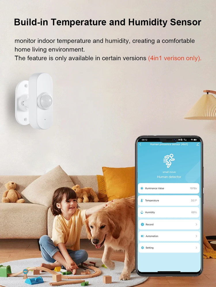 Smart Zigbee Human Presence Sensor 24G Mmwave Radar Motion Light Detector Smart Home Optional Temperature And Humidity Detection
