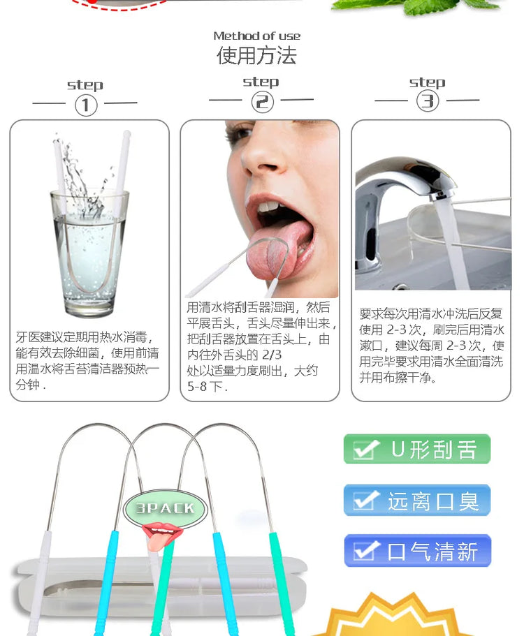 Stainless Steel Tongue Scraper Cleaner Fresh Breath Cleaning Coated Tongue Toothbrush Oral Hygiene Care Tools Raspador De Lengua