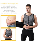 TKPARK Men's Adjustable Compression Tank Top & Waist Trainer - High-Elasticity Workout Shirt with Back Support, Sleeveless Gym Shaper Vest, Zipper Closure & Belt for Fitness Training, Fitness Compression Wear | Sleeveless Tan