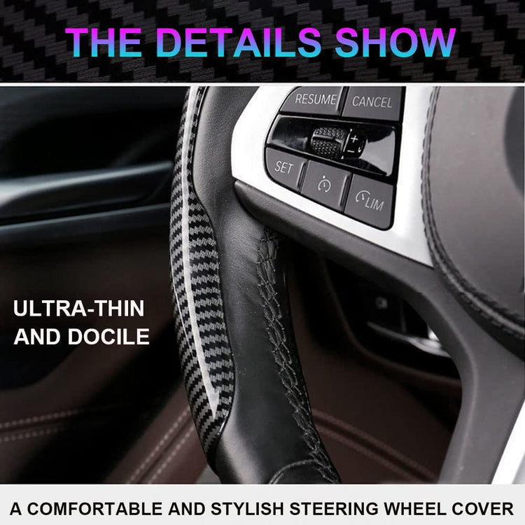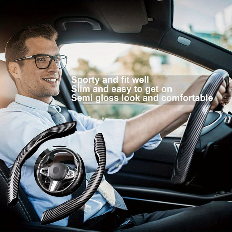 Upgrade Your Driving Experience With A Non-Slip Carbon Fiber Steering Wheel Cover!
