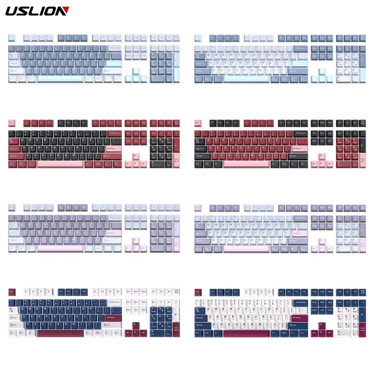 USLION 126 Keys Keycaps Three Color Mix Theme Cherry Profile English PBT Key Caps Set for Mechanical Keyboard