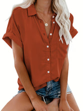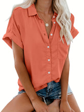 Women'S Short Sleeve V-Neck Button-Up Shirt with Pockets - Light Gray, Casual Summer Top, Perfect for Vacation or Casual Attire, Vacation Clothing | Buttonup Shirt | Glossy Texture